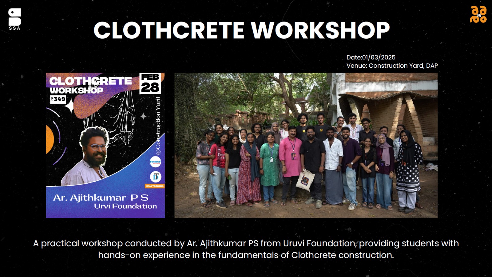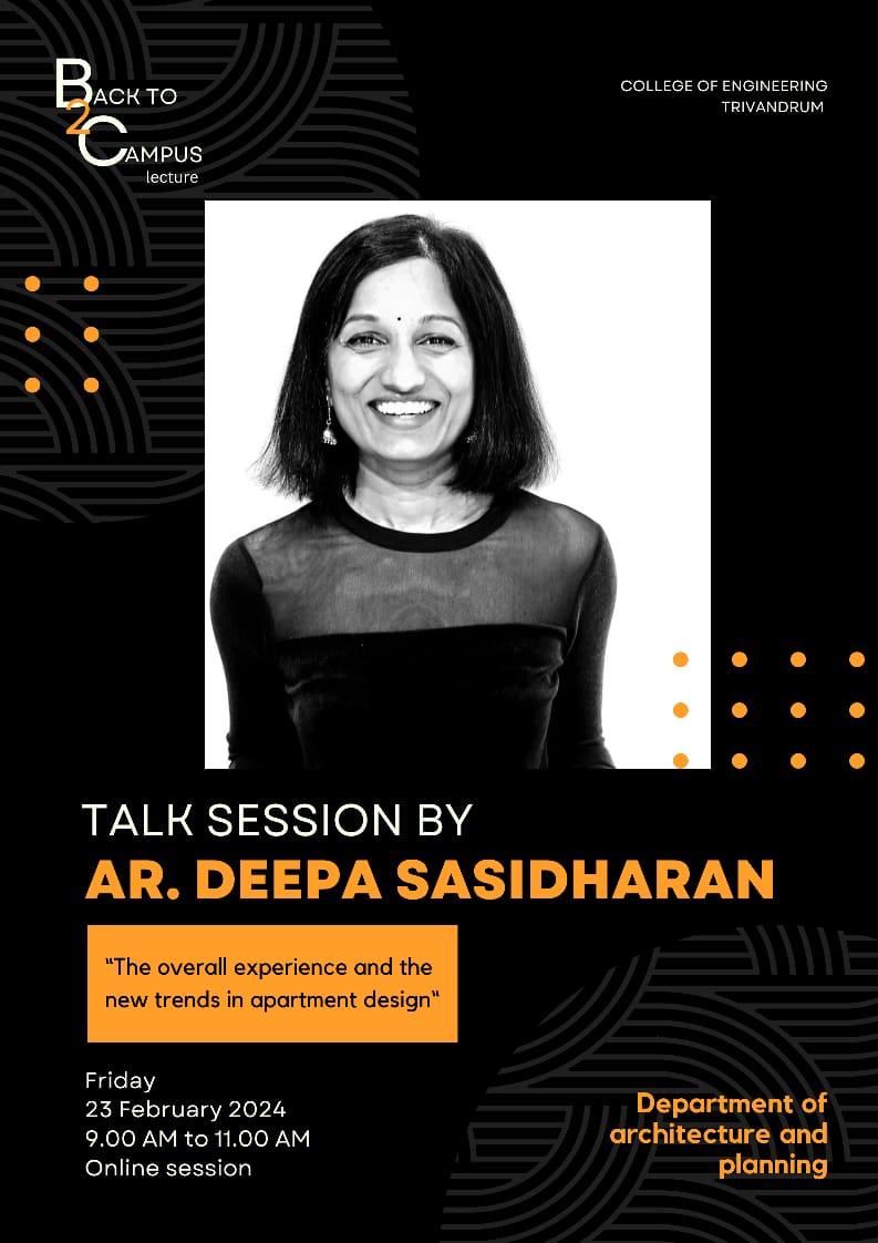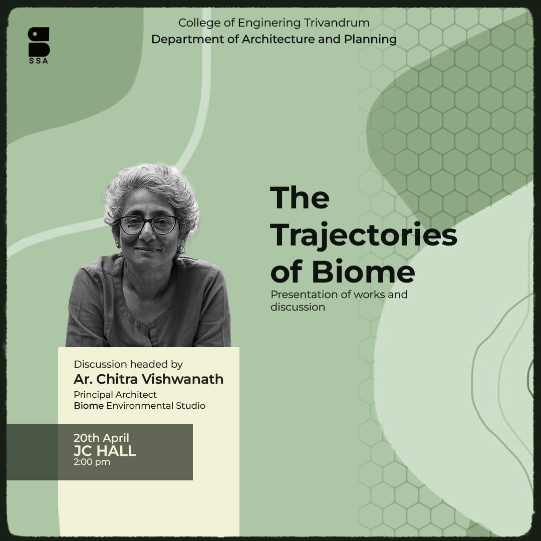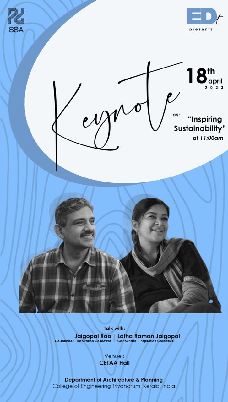 “Rendering Tropical Architecture", a presentation of a series of case studies from the educational trip of ED studio to Srilanka. The presentation will delve into contemporary Sri Lankan architecture and the challenges facing architects and builders in the modern age. The presentation will be followed by Talk on “Inspiring Sustainability” by renowned architects, Ar. Jaigopal Rao and Ar. Latha Raman Jaigopal, co-founders of Inspiration Collective, who integrates Sustainable Development Goals at the heart of their practice.