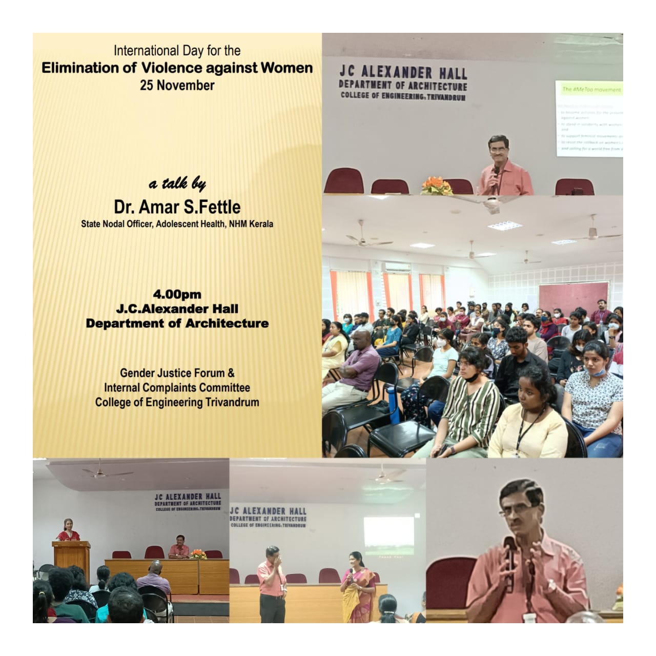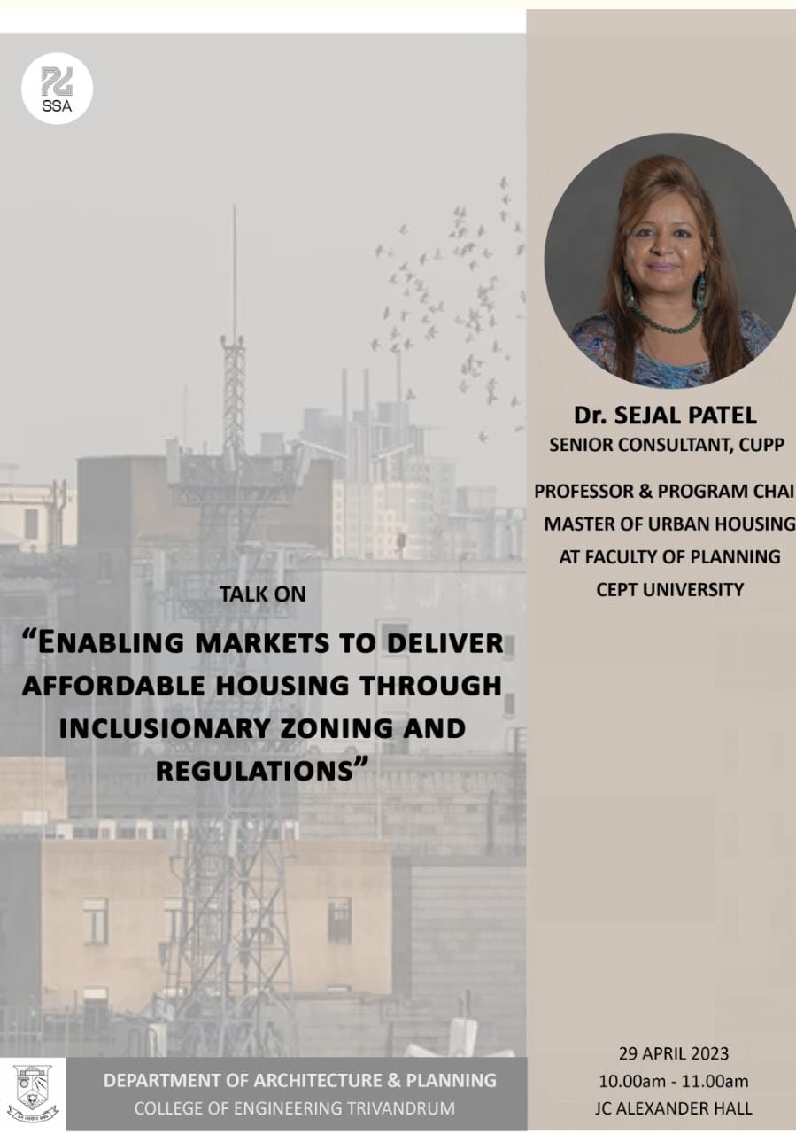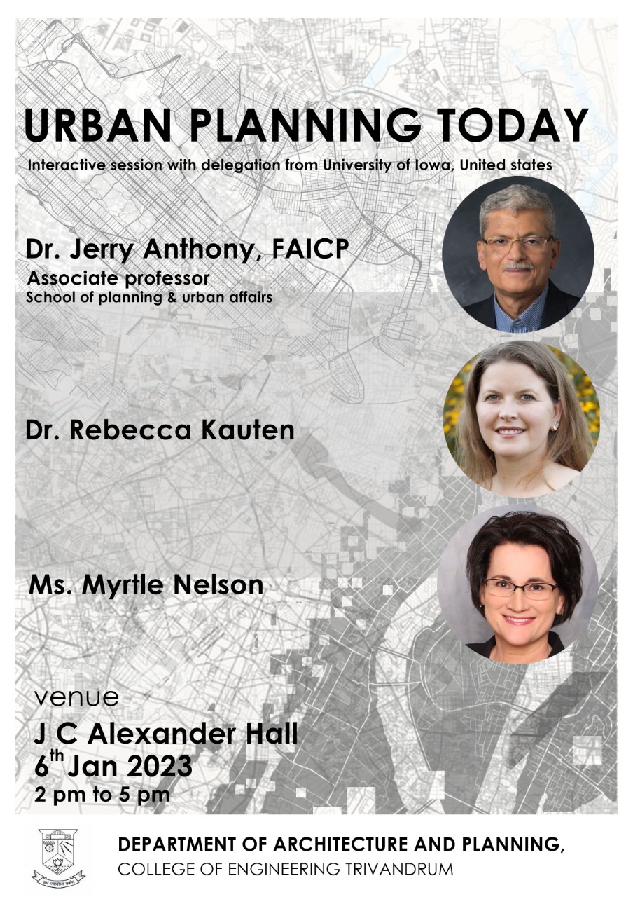 Prof.Shaji TL, Sri. T. Elangovan, Former director of NATPAC, Sri. Kaladharan, Town Planner, Ms. Radhika P.Kumar ( Research Associate, University at Buffalo) and faculty & students of Department of Architecture and Planning spoke on the occasio