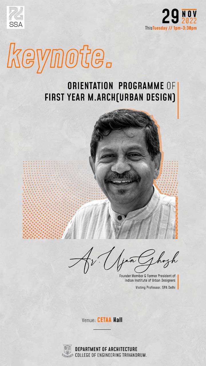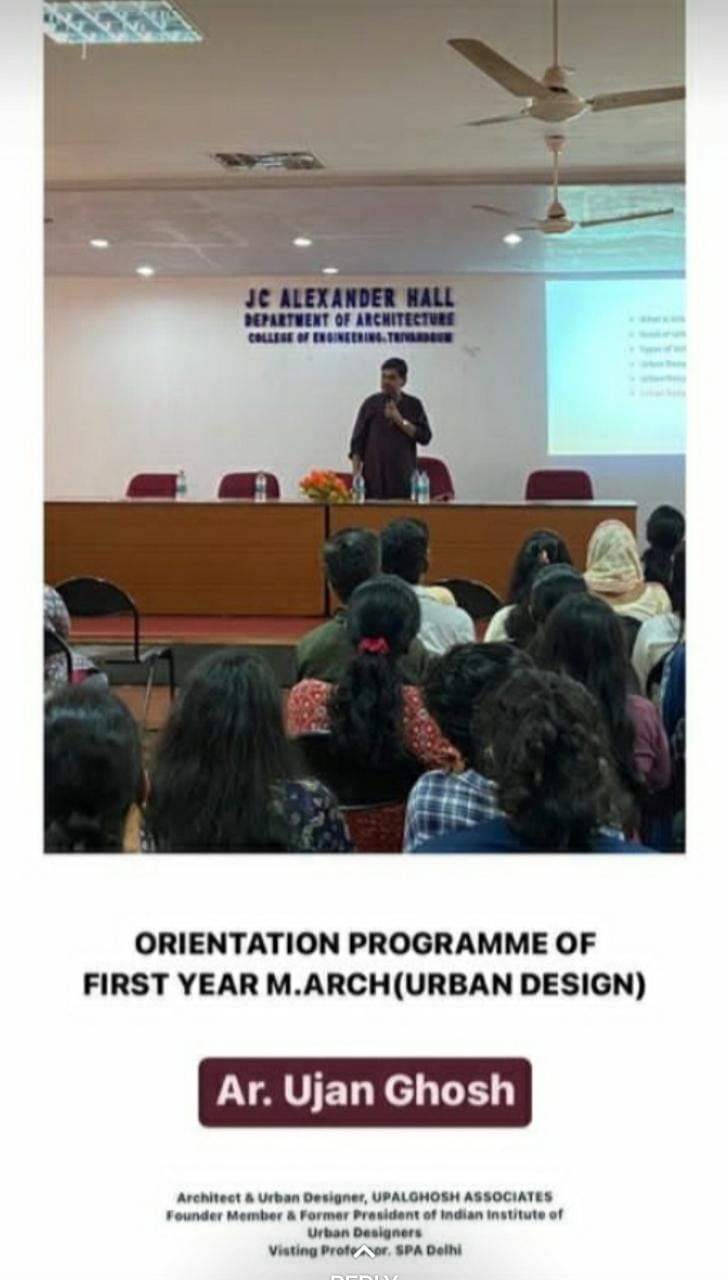 Orientation Programme + Lecture for First year M.Arch (Urban Design) on An introduction to Urban Design and Planning by Ar. Ujan Ghosh (Visiting Professor- SPA Delhi/ Founder Member and Previous President of IUDI on 29th Nov 2022