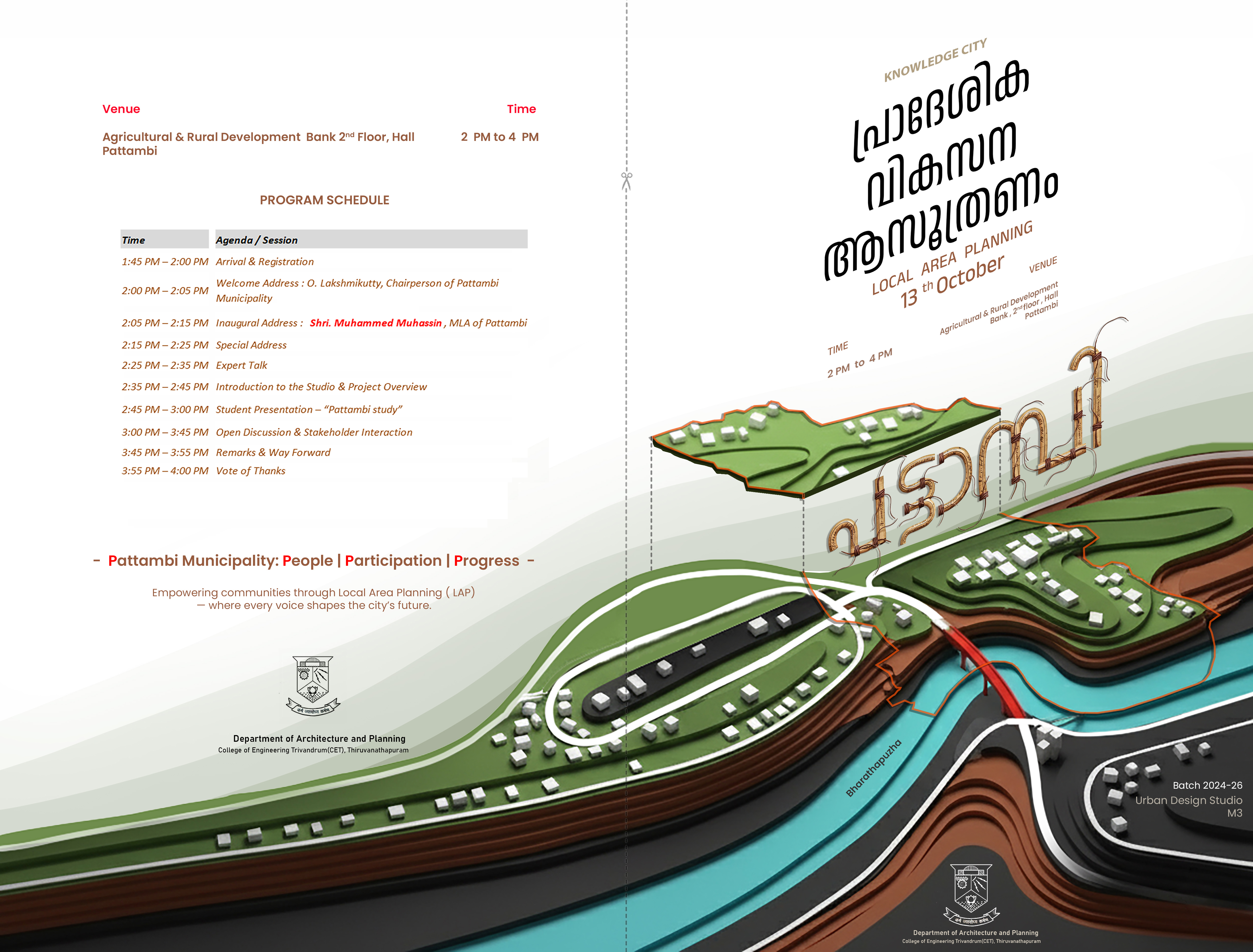 M.Arch Urban Design (2024–2026) students of CET conducted a Public Participatory Meeting in Pattambi as part of their