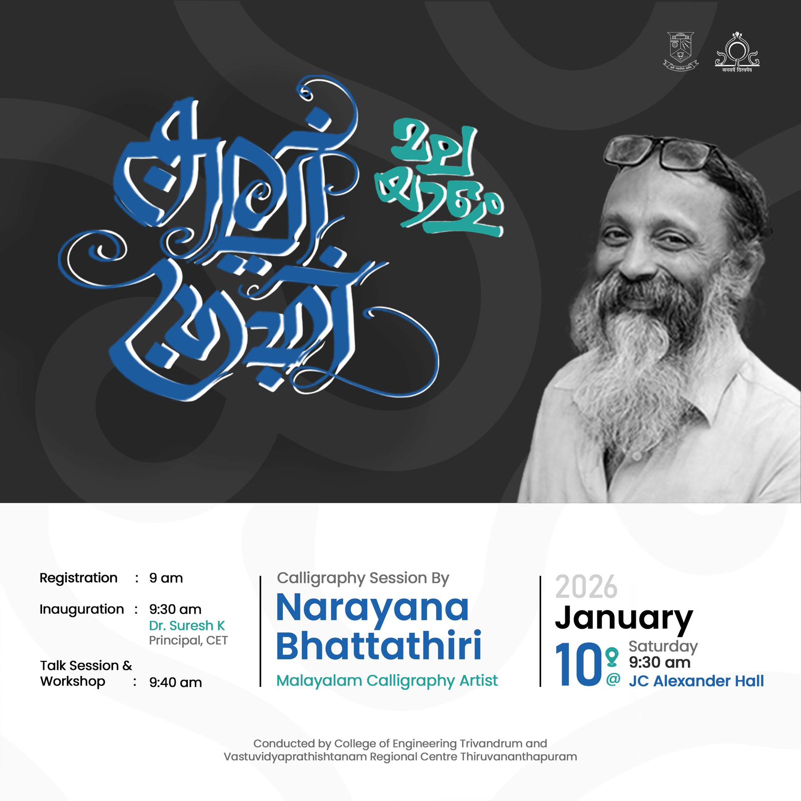 Speaker: NARAYANA BHATTATHIRI, Pioneer of Malayalam Calligraphy