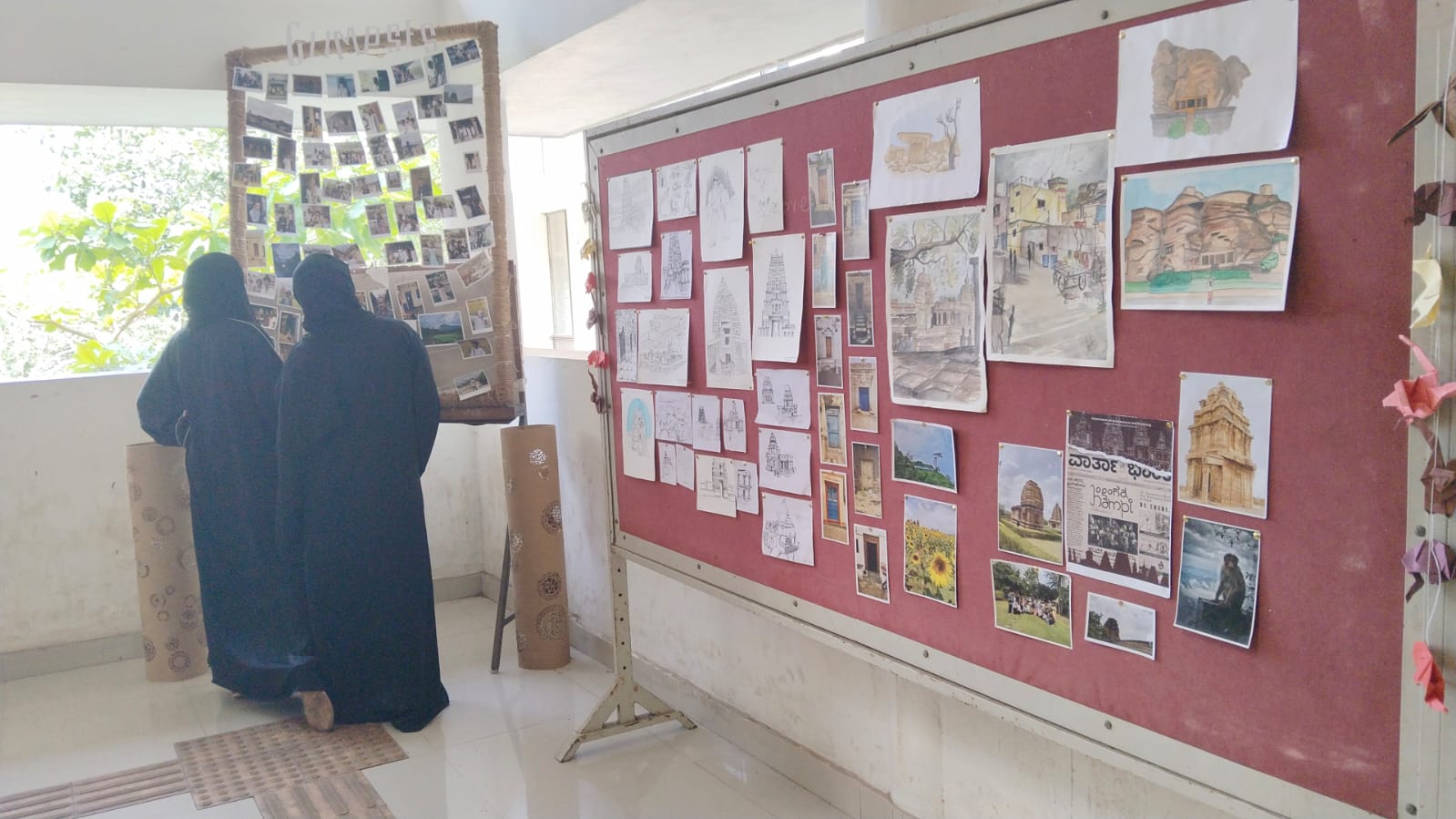 Participants documenting the interiors of Koyikkal Palace | Some of the outputs of the workshop in the exhibition