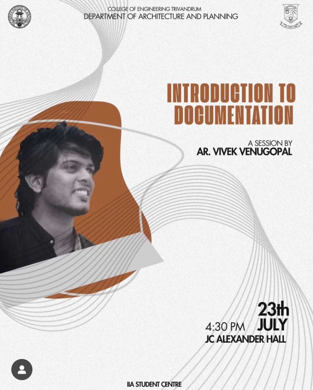Talk by Ar.Vivek Venugopal on Introduction to Documentation was conducted on 23rd July at JC Alexander Hall,