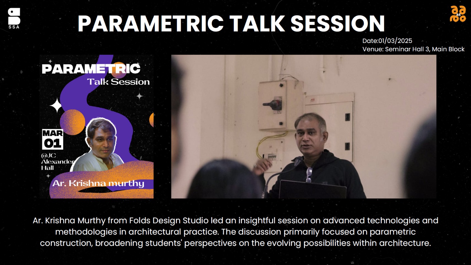 J C Alexander session was handled by Ar. N. Mahesh (Principal Architect, Iyer & Mahesh Architects, Trivandrum)