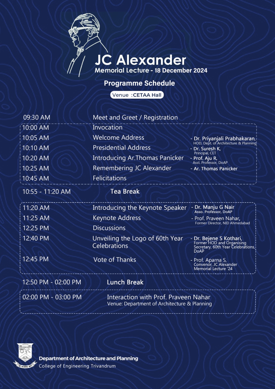 Venue: JC HALL, DEPARTMENT OF ARCHITECTURE AND PLANNING