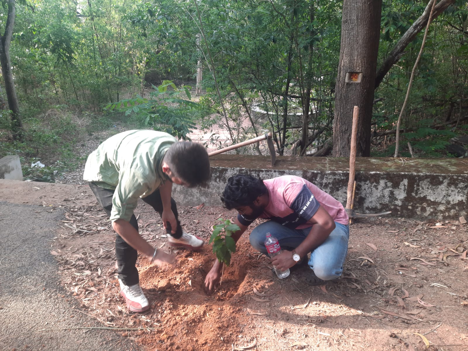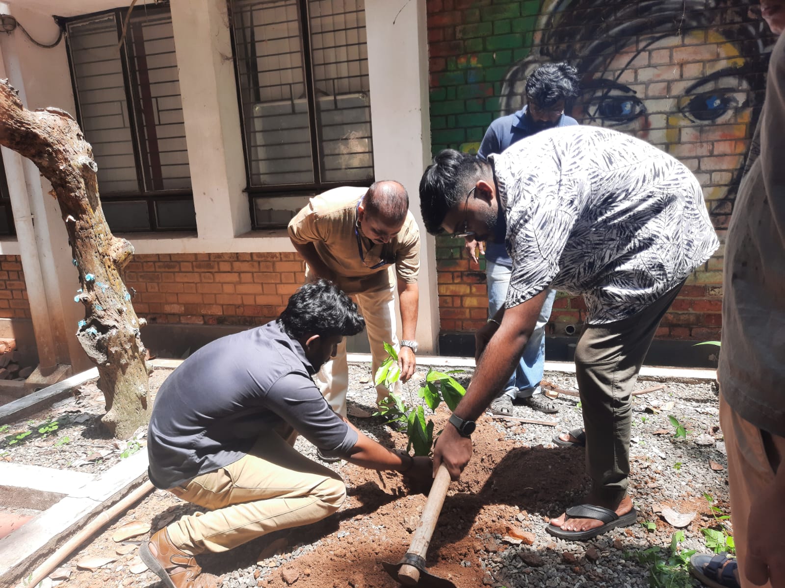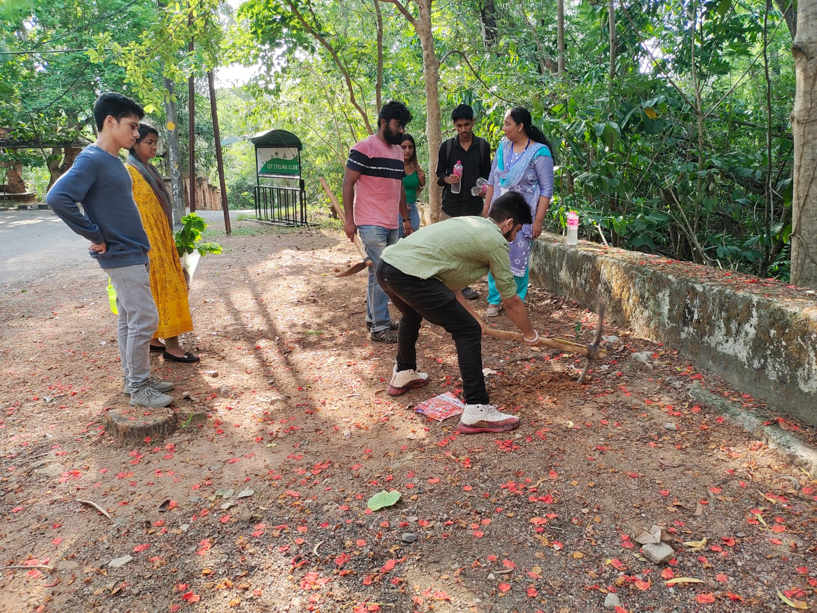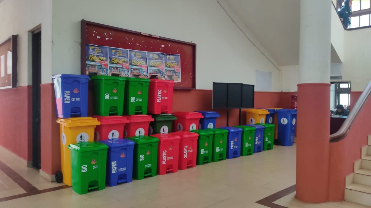 Students and faculty planted saplings and new bins kept in the campus for waste management